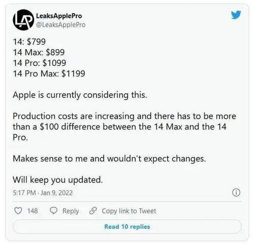 关于苹果17的价格和发布时间,目前还没有确切的消息。不过,根据以往的经验,苹果17的价格可能会在8000元人民币左右,对于一款旗舰手机来说,这个价格可以说是相当亲民了。